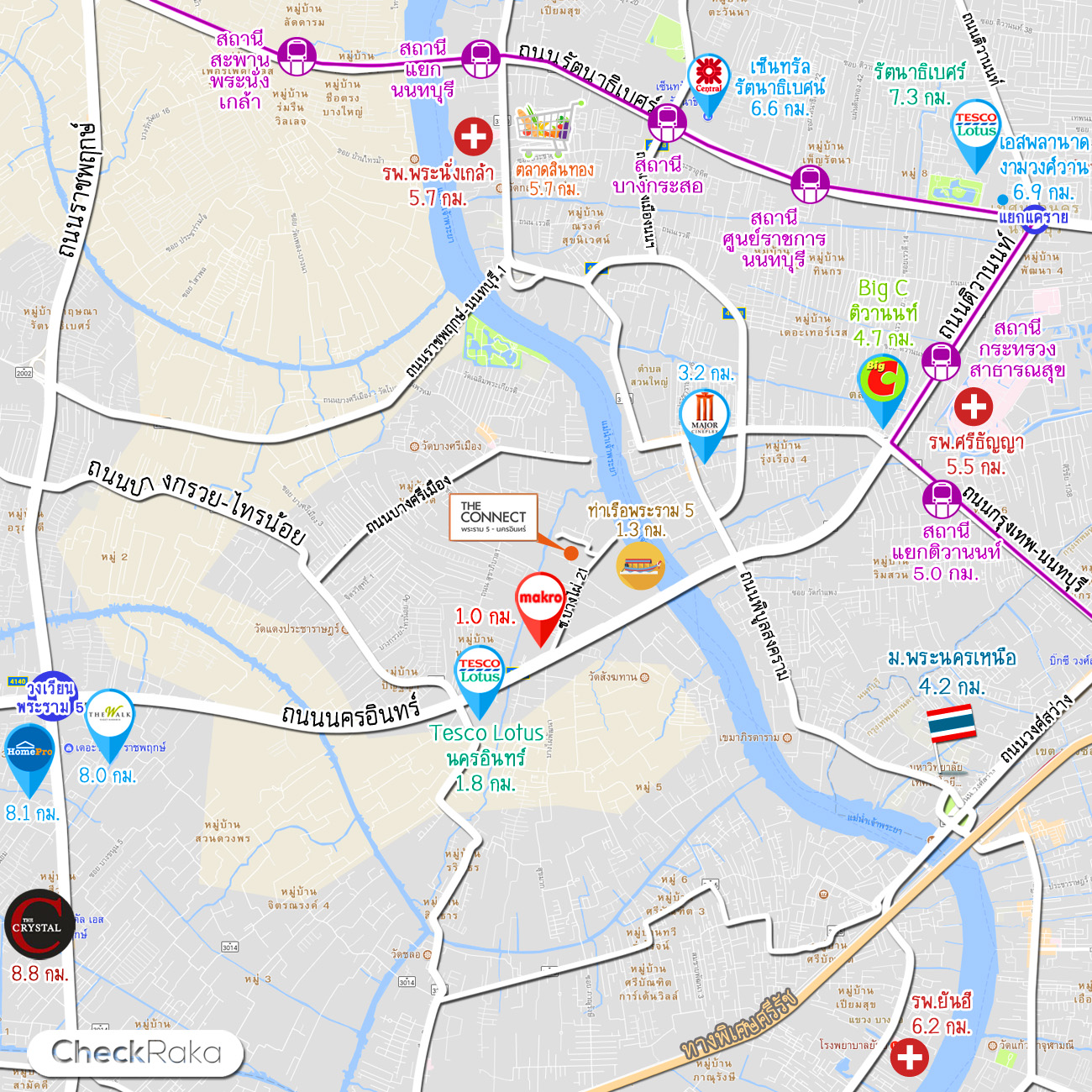 ท่าเรือพระราม 5 ห่างจากโครงการประมาณ 1.3 กม.