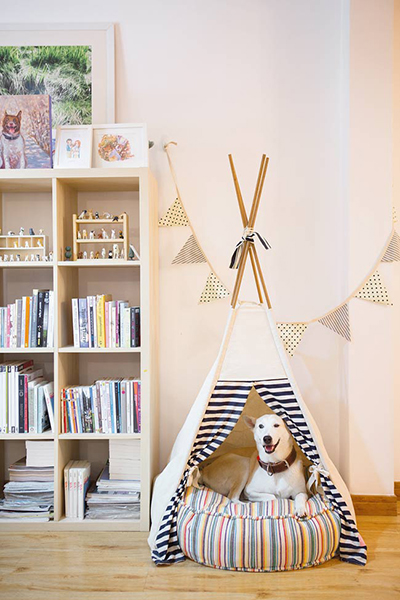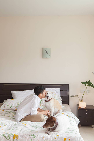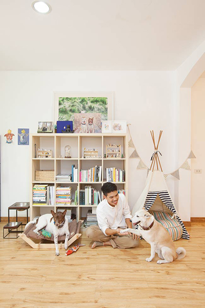 การตกแต่งภายในบ้านดูสะอาดตาและโปร่งสบาย เฟอร์นิเจอร์น้อยชิ้น และมีมุมของเล่นของน้องหมา ทั้งกระโจม เปลนอนและสารพัดของเล่นชิ้นเล็กชิ้นน้อย "สไตล์การตกแต่งได้มาจากการดูโฟโต้บุ๊กของญี่ปุ่น ชอบความคลีน สะอาดตา และผมต้องถ่ายรูปพวกเขาบ่อยๆ ซึ่งเราอยากจะสื่อว่าสุนัขพันทางเขาน่ารักนะ ถ้าเขามีแบ็กกราวนด์ที่ดีก็จะยิ่งช่วยส่งเสริมให้ภาพชัดเจนมากยิ่งขึ้น"