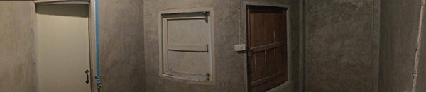 เดิมมีสภาพเป็นผนังขาว ครึ่งล่างทาสีน้ำมันทับไว้ 2 ชั้น ทั้งห้อง มีสายไฟและกล่องปลั๊กสภาพเก่ามาก
