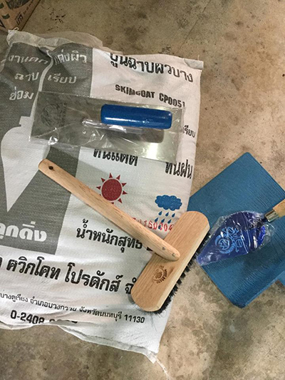 ขั้นตอนที่ 3 เตรียมอุปกรณ์ฉาบตามรูป และปูนฉาบผิวบาง 1 ถุง ให้ฉาบ 2 รอบ