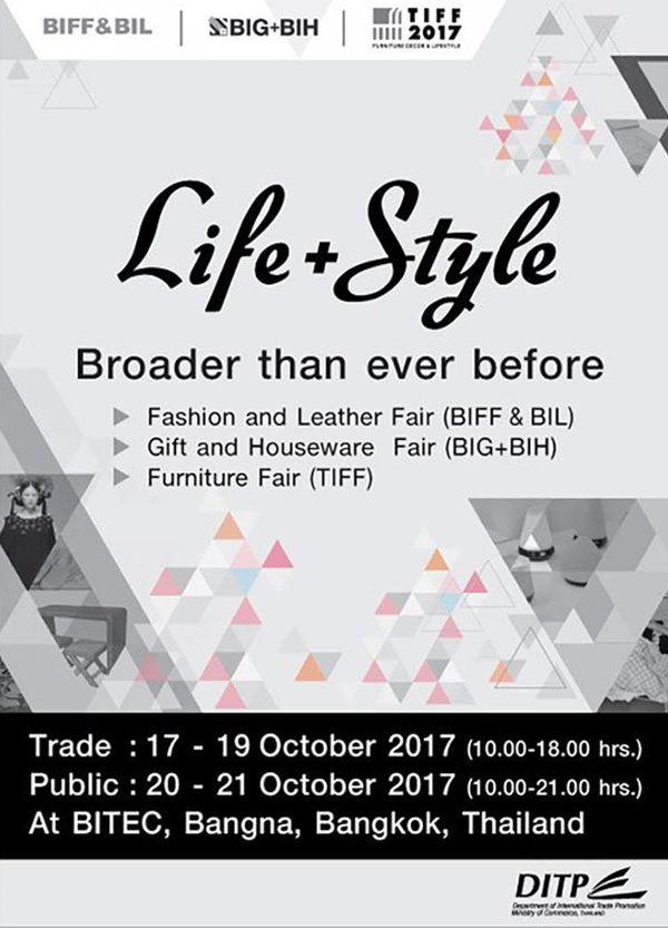 กรมส่งเสริมการค้าระหว่างประเทศ (DITP) จัดงานแสดงสินค้าอย่างยิ่งใหญ่ เอาใจคนรักการแต่งบ้านและแฟชั่น รวมเอา 3 งานเข้าไว้ด้วยกัน คือ งานแสดงสินค้าแฟชั่นและเครื่องหนัง (BIFF&BIL) งานแสดงสินค้าของขวัญและงานแสดงสินค้าของใช้ในบ้าน (BIG+BIH) และงานแสดงสินค้าเฟอร์นิเจอร์ (TIFF) โดยงานจัดขึ้นตั้งแต่วันที่ 17-21 ตุลาคม 2560 นี้ ที่ไบเทค บางนา วันนี้ Checkraka เก็บภาพบรรยากาศภายในงานมาเรียกน้ำย่อย ขอบอกว่าของเยอะ และมีครบจบที่นี่จริงๆ ไปดูกันเลยค่ะ