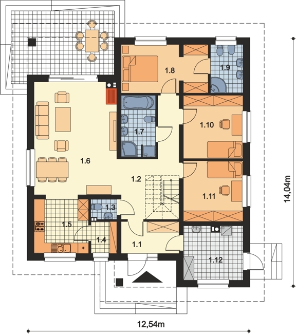 แบบบ้านเหมาะกับครอบครัวขนาดเล็ก 3-4 คน อาจมีสมาชิกคุณพ่อคุณแม่ และลูกๆ อีก 2 คน ตัวบ้านยังแยกพื้นที่ซักล้างออกไปต่างหากด้วยนะคะ ทำให้เวลาซักผ้าค่อนข้างสะดวกและไม่เกะกะพื้นที่อื่นๆ หลังบ้านมีชานบ้านกว้างๆ เอาไว้สำหรับวางของเล่น เครื่องเล่นต่างๆ ของเด็กๆ หรือเอาไว้เป็นพื้นที่จัดปาร์ตี้วันหยุดได้เลย