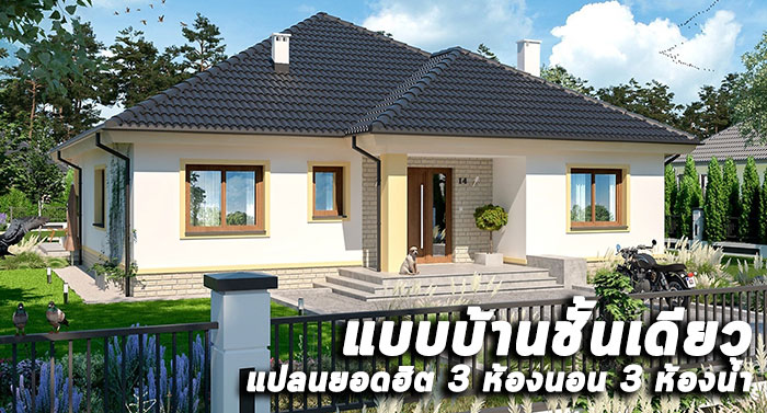 แบบบ้านชั้นเดียว แปลนยอดฮิต 3 ห้องนอน 3 ห้องน้ำ