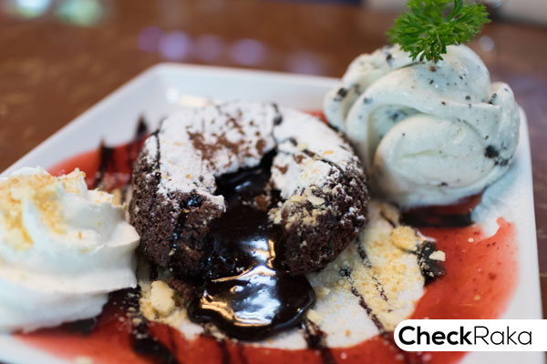 และขนมที่พลาดไม่ได้ของร้านนี้ คือช็อคโกแลตลาวา ที่มีลาวาเยิ้มๆ กินคู่ซอสสตรอว์เบอร์รี