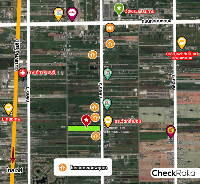 - ที่ตั้งโครงการ : ถนนคลองหลวง ตำบลคลองสอง อำเภอคลองหลวง จังหวัดปทุมธานี 12120