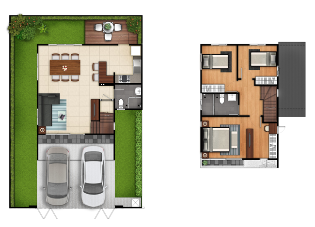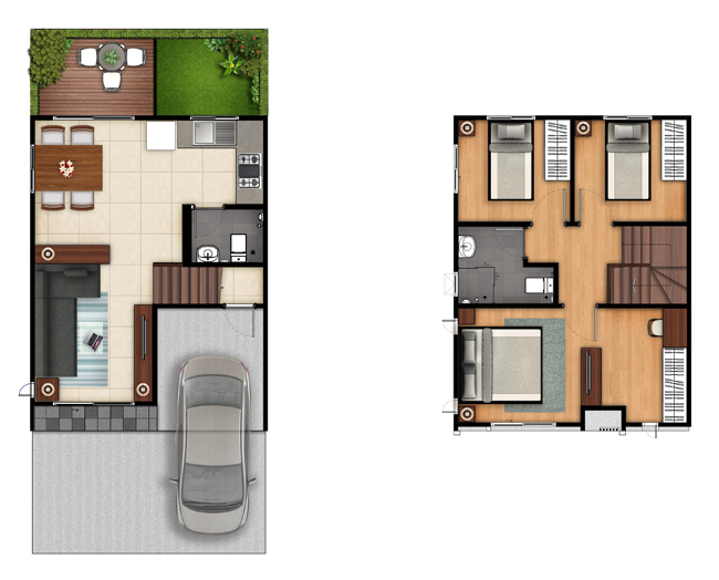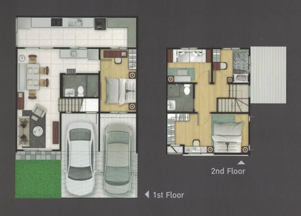 แปลนบ้านทั้งสองชั้นของบ้านแฝด