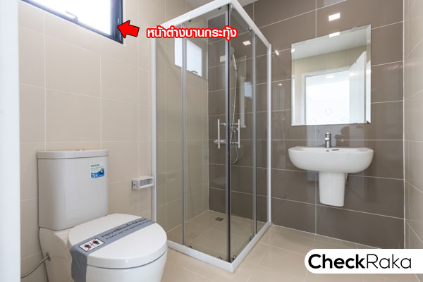 และมีหน้าต่างบานเลื่อนระบายอากาศด้านหลังให้ 1 บาน ห้องน้ำห้องนี้วางตัวอยู่ตรงกลางบ้านค่ะ