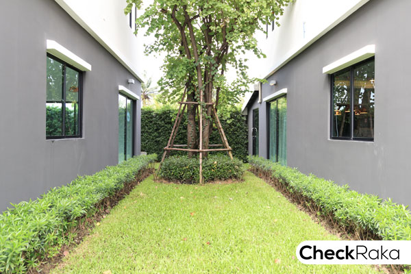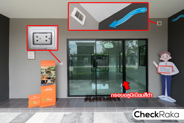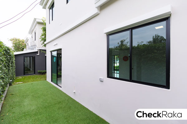 เหล็กสีดำ และมีถังขยะแบบฝังกำแพงมาให้ทุกหลัง รั้วบ้านกั้นสูงประมาณ 1.7 เมตร บ้านทุกหลังมีพื้นที่ด้านข้างบ้าน