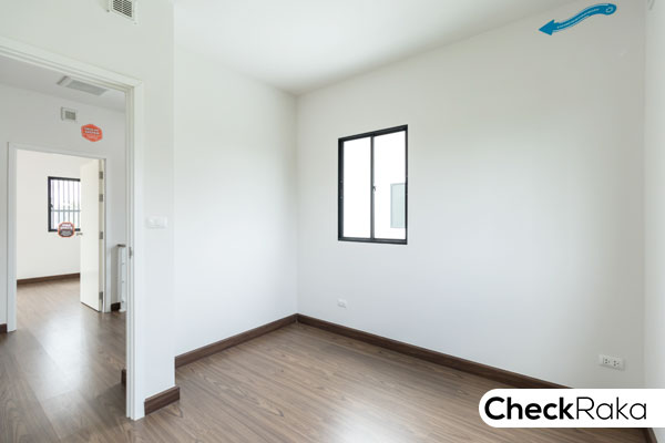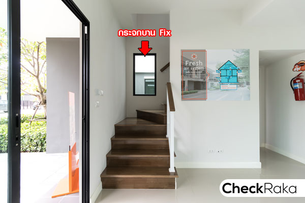 ห้องนอน 3 อยู่ติดกับบันไดเลย มีหน้าต่างบานเลื่อนมาให้ 2 จุด ผนังห้องติดตั้งช่องลมระบายอากาศมาให้