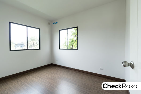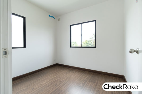 มีหน้าต่างบานเลื่อน 2 บาน และเหลือพื้นที่ปลายเตียงเล็กน้อย