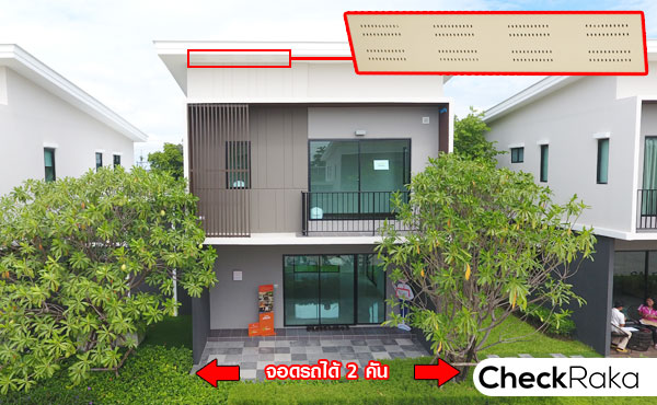 ภายในบ้าน และช่วยให้บ้านเย็นขึ้น ส่วนบ้านมีหน้ากว้าง 5.7 เมตร จอดรถได้ 2 คันค่ะ
