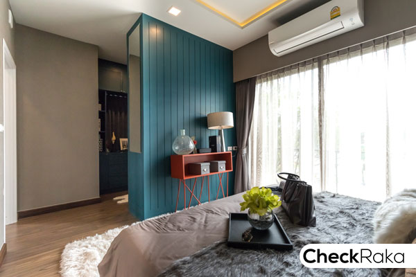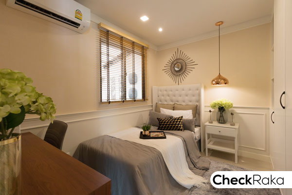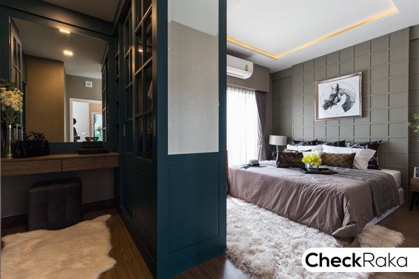 พื้นที่ปลายเตียง ทางโครงการกั้นเป็น Mini Walk in Closet เพื่อให้ดูเป็นสัดส่วนมากขึ้น