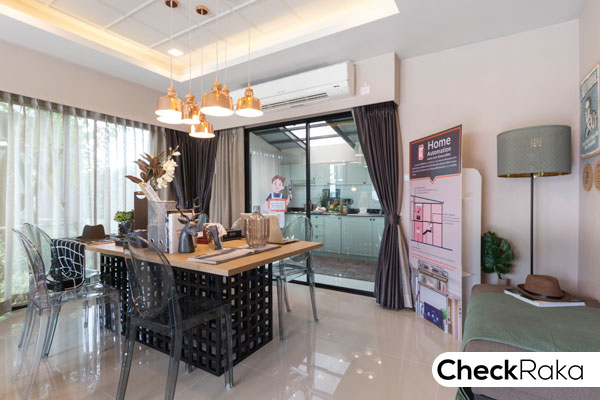 ตรงข้ามกับห้องอเนกประสงค์ คือพื้นที่จัดวางโต๊ะรับประทานอาหาร สามารถวางโต๊ะได้ 4 - 6 ที่
