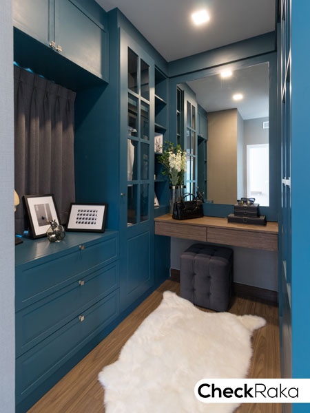 ภายใน mini Walk in Closet มีพื้นที่ให้ Built in ตู้เสื้อผ้า และโต๊ะเครื่องแป้งพอดี