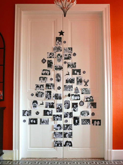 นำรูปน่ารักๆ ของแฟน หรือรูปครอบครัวมาติดเป็นรูปทรงต้นคริสต์มาสที่ประตู หรือผนังบ้าน