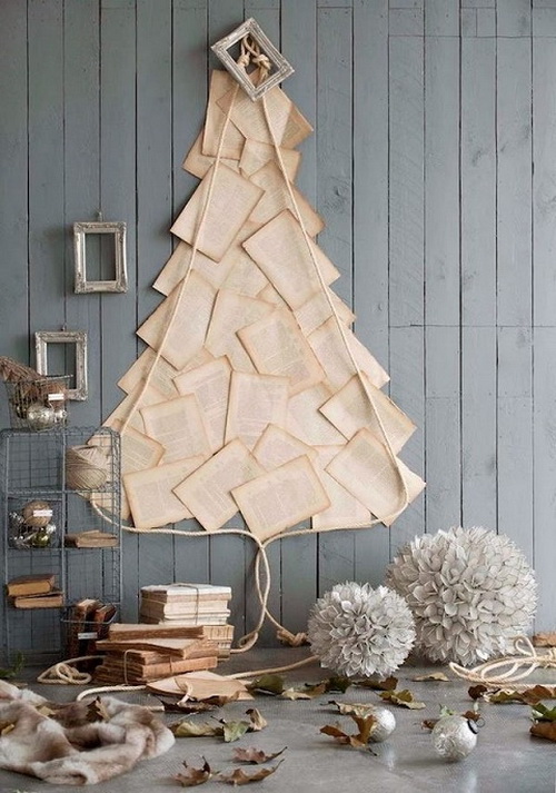 หนังสือนำมาเปิดหน้าแล้ววางกองตั้งๆ รวมกัน ออกมาเป็นต้นคริสต์มาสเฉยเลย