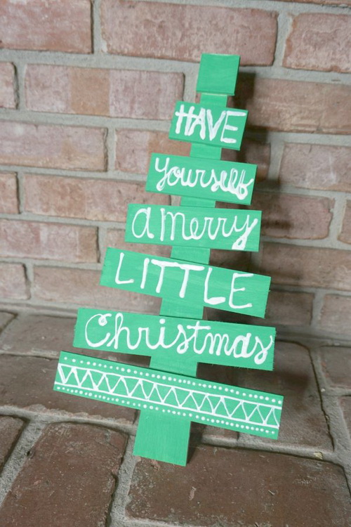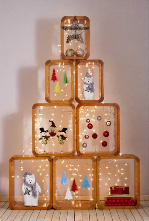 ถ้าพอมีเวลาหน่อย ใช้แผ่นไม้มาเลื่อยตัดให้เป็นรูปทรงต้นคริสต์มาส แล้วทำเป็นชั้นวางของได้ด้วย