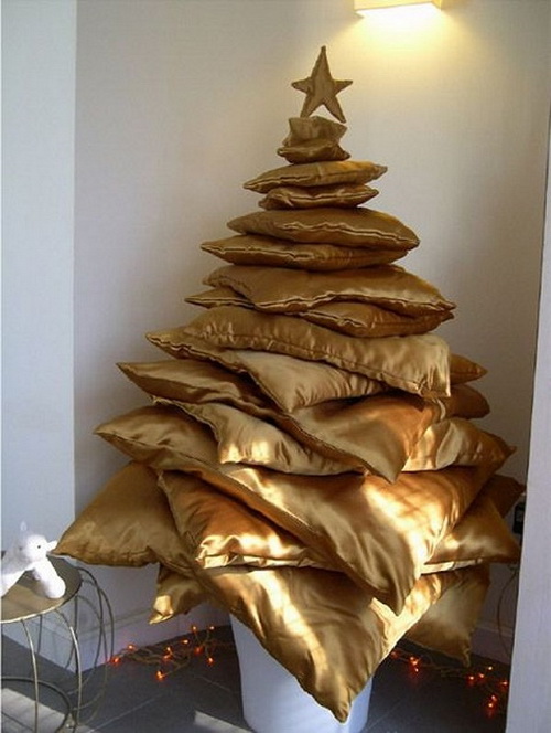 นี่คือหมอน! หมอนหลายใบ หลายขนาด ถ้าใช้โทนสีเดียวกันจะให้ความรู้สึกมองเป็นต้นคริสต์มาสได้ง่ายกว่า