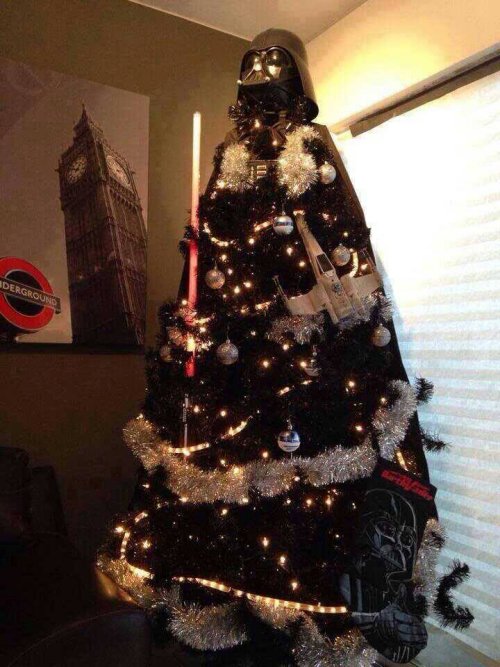 บ้านไหนมีหุ่น Darth Vader อยู่ นำพู่สีเงินมาพันๆ ประดับดวงไฟ ก็ได้บรรยากาศคริสต์มาสแล้ว
