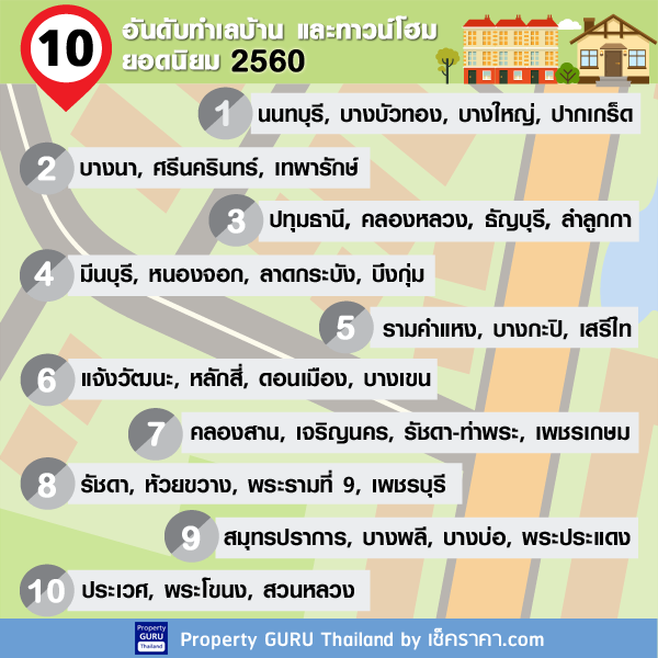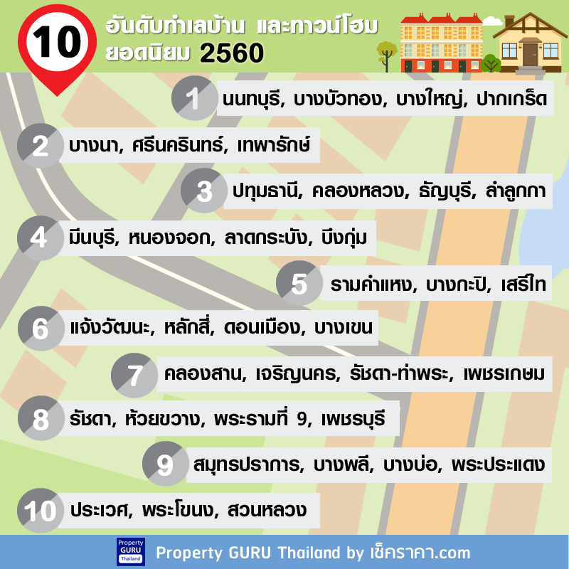 10 อันดับทำเลบ้านและทาวน์โฮม ยอดนิยม 2560