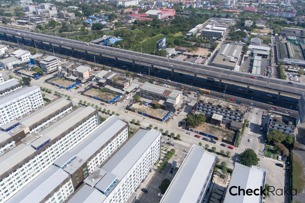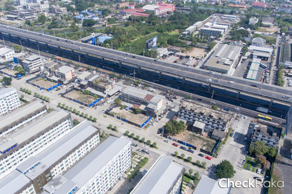 ภาพมุมสูงที่ตั้งโครงการ จะเห็นว่าแปลงที่ดินของโครงการนั้นกำลังอยู่ในระหว่างการเตรียมก่อสร้าง