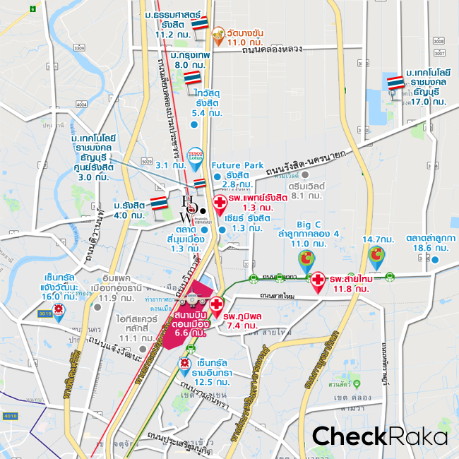 - ที่ตั้งโครงการ : ซอยพหลโยธิน 89 ถนนพหลโยธิน ตำบลประชาธิปัตย์ อำเภอธัญบุรี จังหวัดปทุมธานี 12130