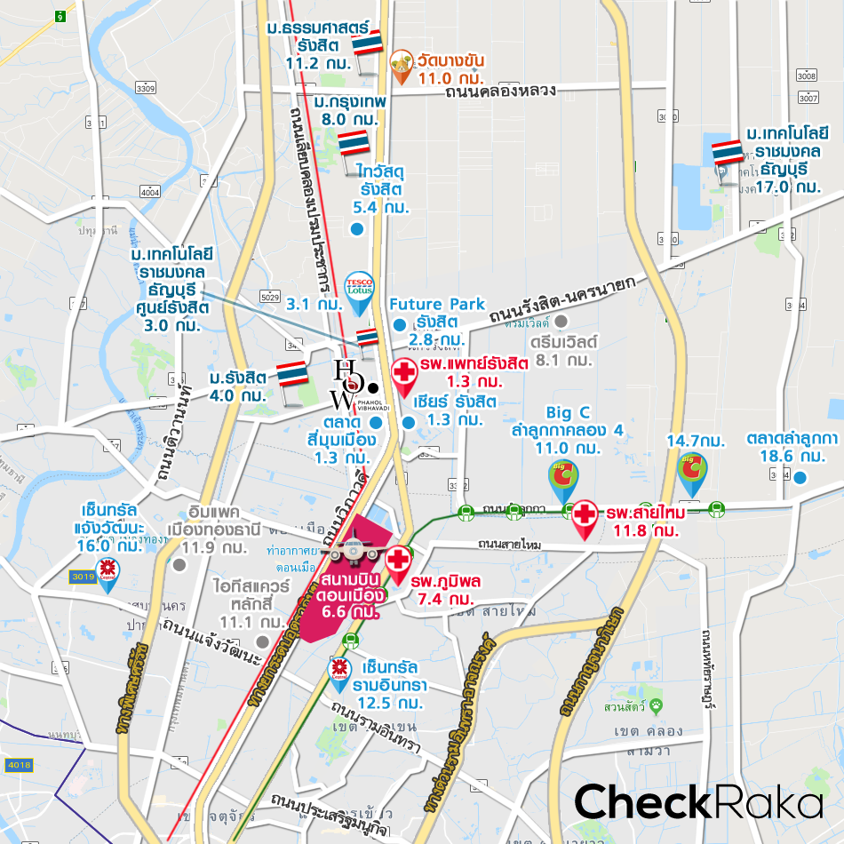 - ที่ตั้งโครงการ : ซอยพหลโยธิน 89 ถนนพหลโยธิน ตำบลประชาธิปัตย์ อำเภอธัญบุรี จังหวัดปทุมธานี 12130