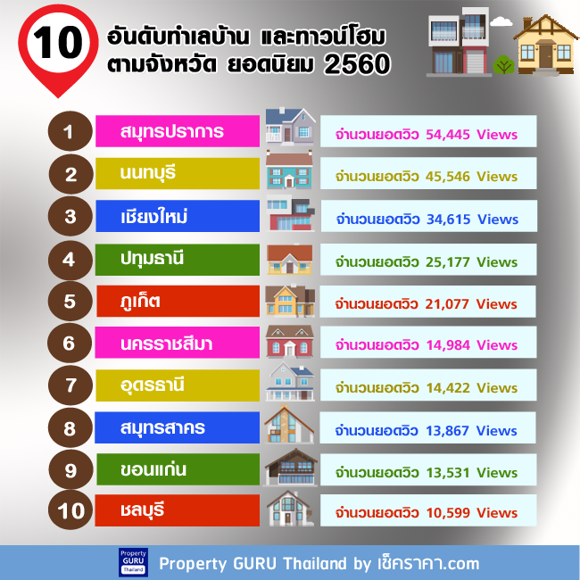 10 อันดับทำเลบ้านและทาวน์โฮม (ตามจังหวัด) ยอดนิยม ที่คนค้นหามากที่สุด ปี 2560