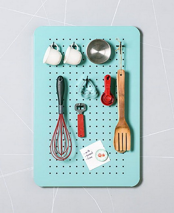 เพ็กบอร์ด หรือ เป็กบอร์ด (Pegboard) ก็คือแผ่นกระดานเจาะรูหลายๆ รู ใช้สำหรับติดผนังเพื่อแขวนเก็บของให้เป็นระเบียบ หรือประดับตกแต่งก็ได้เช่นกัน เพ็กบอร์ดมีทั้งเป็นแบบแผ่นไม้ แผ่นเหล็ก หรือแผ่นอลูมิเนียม เราสามารถเลือกใช้งานได้ตามความเหมาะสมกับสิ่งของที่เราจะนำมาแขวน และมีหลากหลายขนาดให้เลือกสรร สำหรับไอเดียที่เรานำมาฝากกันนี้ เป็นไอเดียตกแต่งบ้านด้วยเพ็กบอร์ดหลากหลายรูปแบบ ซึ่งช่วยให้บ้านของเรานั้นเป็นระเบียบ และสวยงามแบบไม่เหมือนใคร สามารถนำไปประยุกต์ใช้ได้ตามใจชอบเลยค่ะ