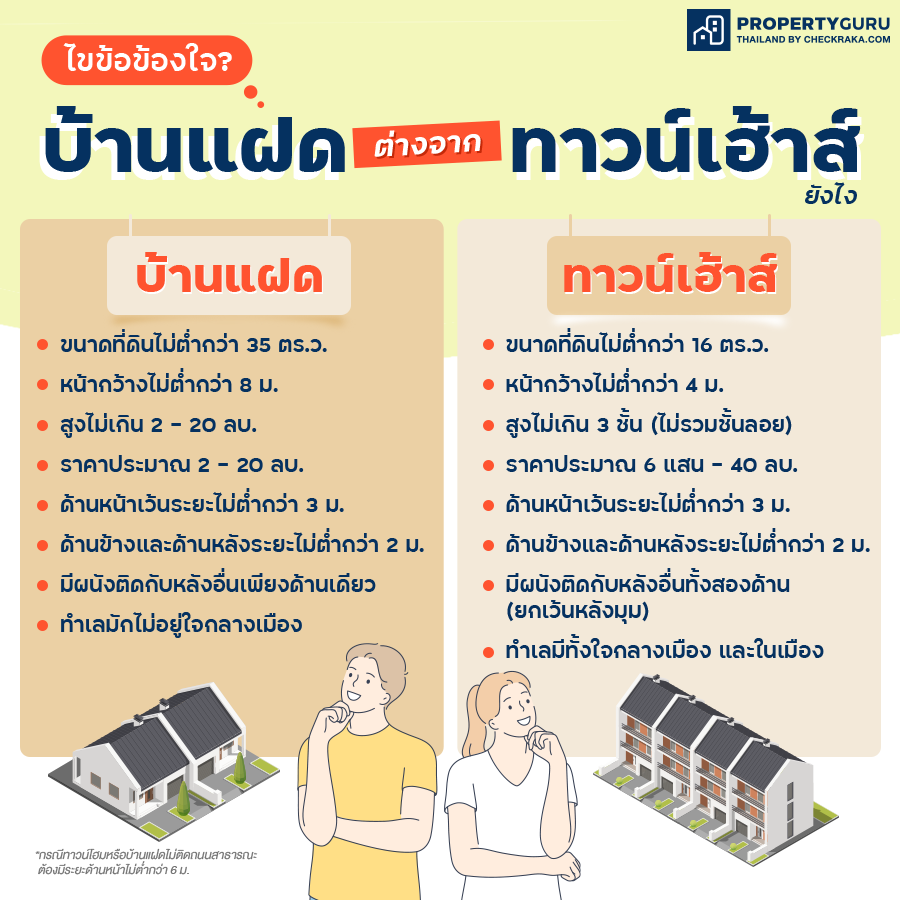 - ทาวน์เฮ้าส์ที่หน้าแคบจะมีพื้นที่ใช้งานน้อยกว่า บ้านแฝด