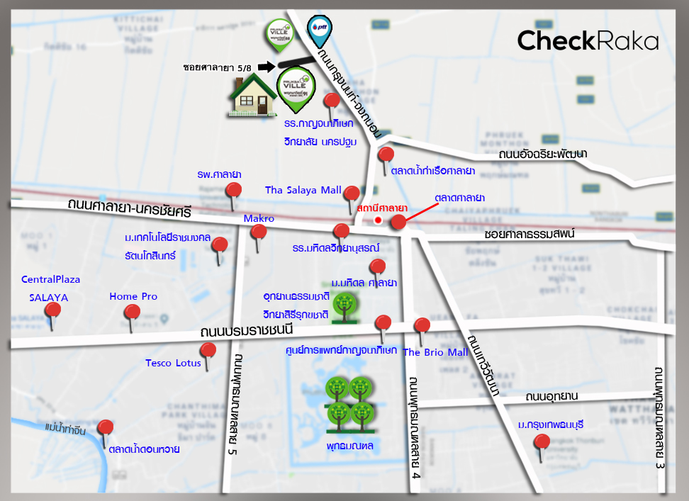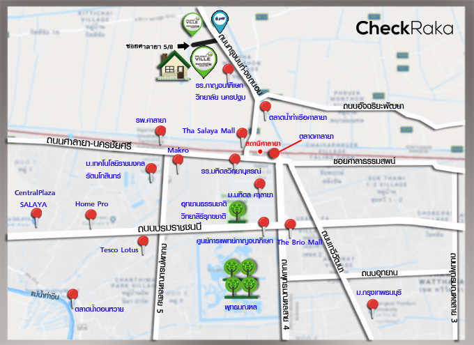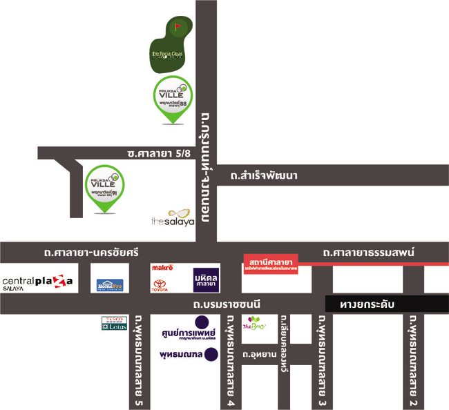 - ที่ตั้งโครงการ : ซอยศาลายา 5/8 ถนนศาลายา-บางเลน ตำบลศาลายา อำเภอพุทธมณฑล จังหวัดนครปฐม 73170