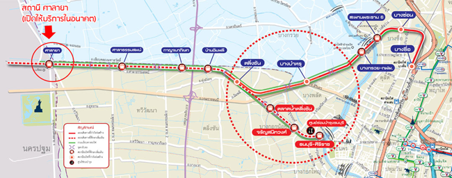 เส้นทางเดินรถไฟฟ้าสายสีแดงอ่อน (ส่วนต่อขยายศาลายา-ตลิ่งชัน) (คลิกเพื่อดูภาพใหญ่)