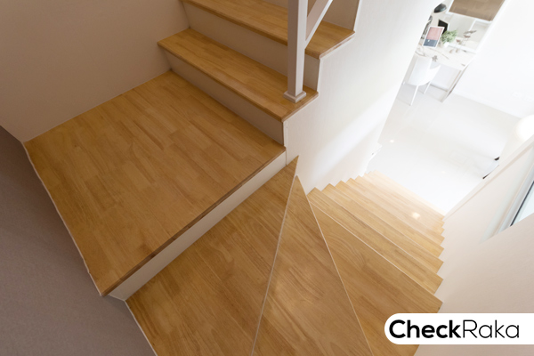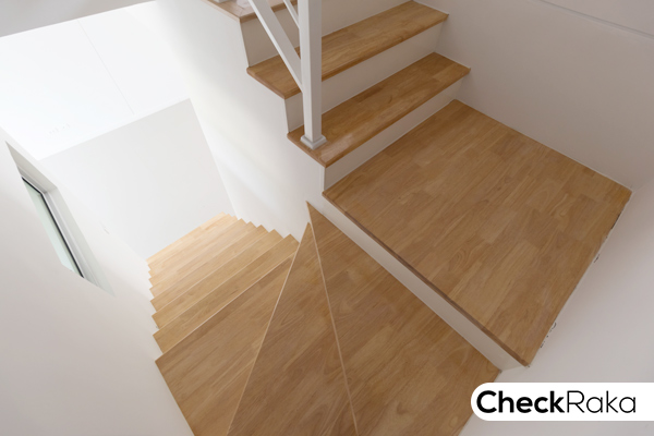 ขึ้นมาครึ่งนึงของบันไดจะมีชานพักแบบสามเหลี่ยม และสี่เหลี่ยม