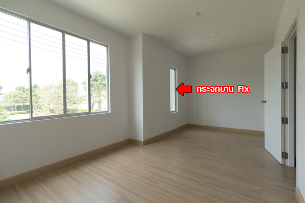 ติดกับห้องน้้ำ คือ Master Bedroom ห้องนี้จะวางตัวอยู่ฝั่งด้านหน้าบ้าน มีหน้าต่างบานเลื่อนขนาดใหญ่เห็นวิวด้านหน้าบ้าน ภายในห้องสามารถจัดวางเตียง ตู้เสื้อผ้า โต๊ะเครื่องแป้ง ได้พอดี