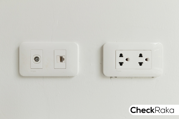 ปลั๊กไฟ และจุดสำหรับเสียบสายทีวี อินเทอร์เน็ต ของ Schneider
