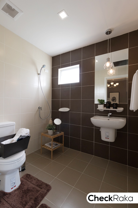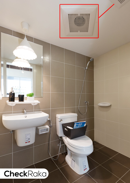 ติดตั้งพัดลมดูดอากาศให้ เพื่อระบายกลิ่น และความชื้นจาหภายในห้องน้ำ เดินสายไฟไว้สำหรับ