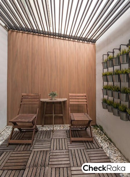 จัดเป็นพื้นที่นั่งเล่นด้านหลังบ้าน