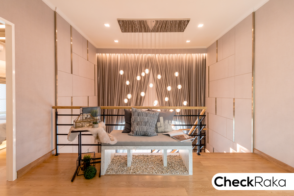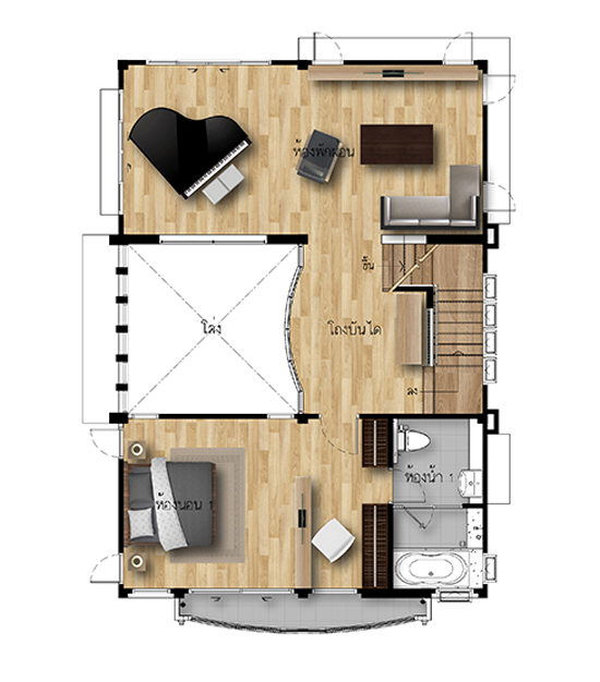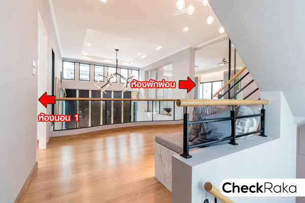 บนโถงชั้น 2 ตรงหน้าห้องนอน 4 สามารถจัดวางโซฟานั่งเล่น เป็นมุมเล็กๆ แบบนี้ได้นะคะ