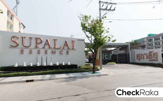 ทางเข้าโครงการมีป้ายบอกชื่อโครงการขนาดใหญ่เห็นได้ชัดเจน พร้อมสัญลักษณ์ Supalai Essence Ladprao