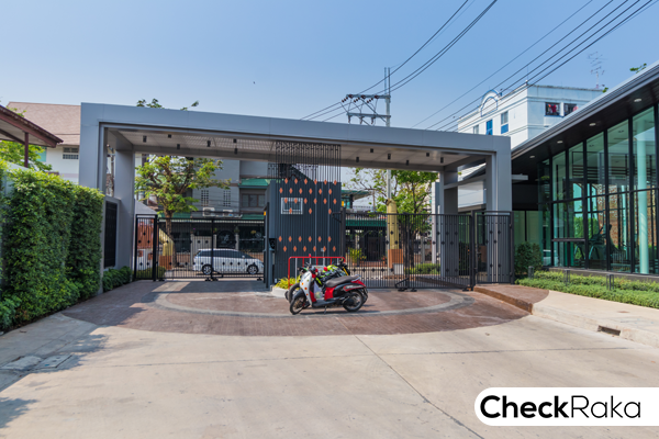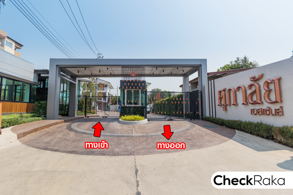 ซุ้มประตูโครงการมีขนาดใหญ่สไตล์โมเดิร์น มีหลังคากันแดด-กันฝน