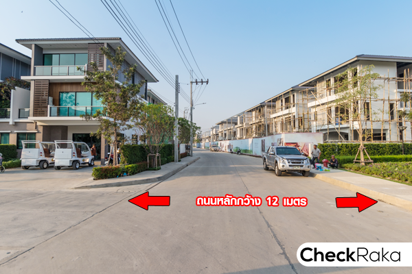 บ้านตัวอย่างทั้งสองแบบก็อยู่ถัดกันไป ส่วนถนนหลักกว้าง 12 เมตร