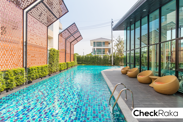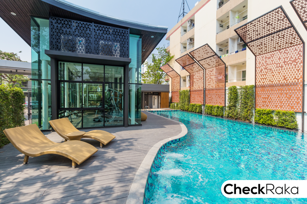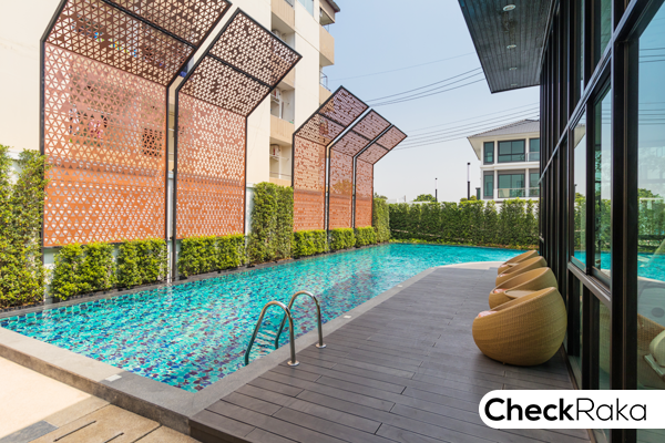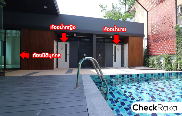 เข้ามาด้านในประกอบไปด้วยสระว่ายน้ำระบบเกลือ และห้องสำหรับนิติบุคคล