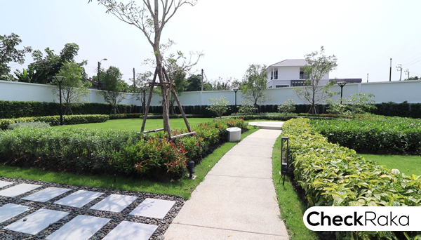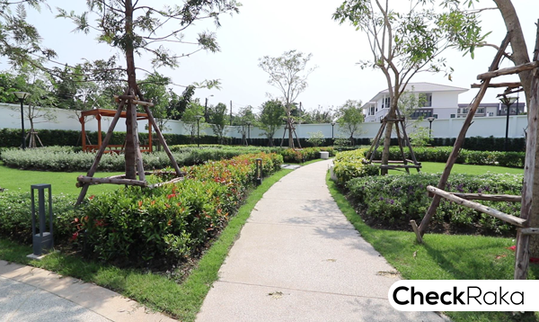 มีทางเดินสำหรับเดินเล่นในสวนไว้ให้ด้วย พร้อมลงไม้ใหญ่ ไม้พุ่มไว้ โดยรอบ