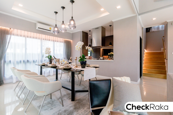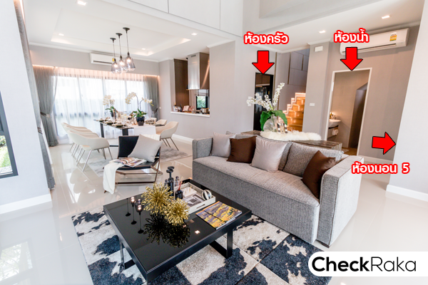 สำหรับแบบบ้านที่ทางทีมงาน Checkraka.com ได้มีโอกาสเข้าเยี่ยมชมและเก็บภาพมาฝากกันในคราวนี้คือ แบบบ้าน "ศุภศิริ" ซึ่งเป็น บ้านเดี่ยว 3 ชั้น โดยบ้าน TYPE นี้มีฟังก์ชัน 5 ห้องนอน 4 ห้องน้ำ 1 ห้องพักผ่อนส่วนตัวชั้น 2 ที่จอดรถ 4 คัน พร้อมห้องแม่บ้าน และห้องน้ำ โอ่โถงด้วย ห้องรับแขก Grand Vertical Living Room สูง 6 เมตร