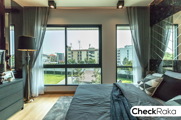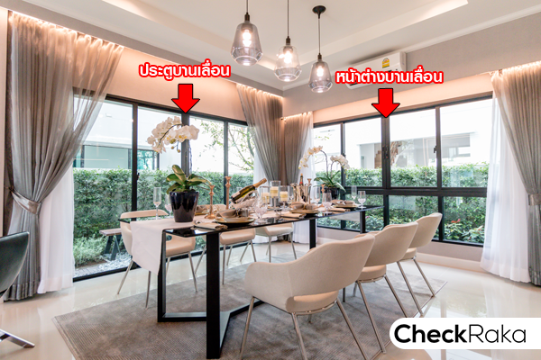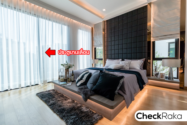 มีหน้าต่างบานเลื่อนและกระจกบานใหญ่ ช่วยเพิ่มความสว่างของห้องได้ดี