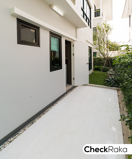 ด้านข้างสำหรับบ้านเปล่าที่ส่งมอบให้ลูกค้า ปกติแล้วทางโครงการจะปูหญ้ามาให้