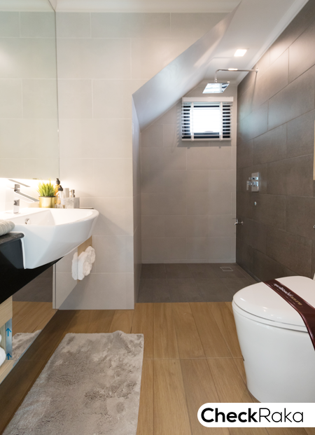 ภายในส่วนเปียกติดตั้งฝักบัวและมีหน้าต่างบานกระทุ้งสำหรับระบายอากาศ 1 บาน