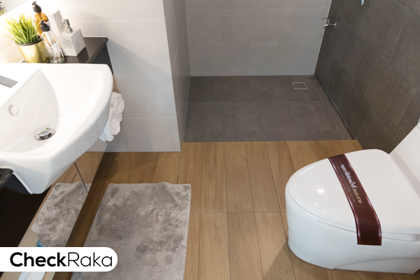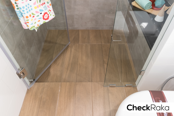 แยกส่วนเปียก/แห้งให้อย่างชัดเจน ด้วยประตูกระจกนิรภัย พื้นส่วนเปียกลดระดับลงเล็กน้อย