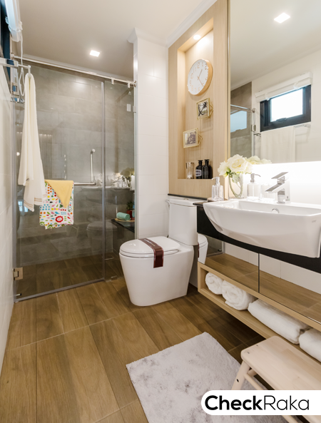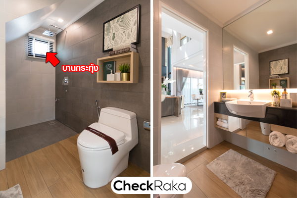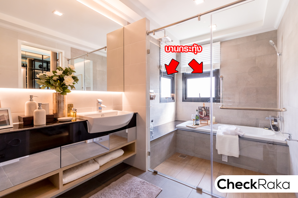 กั้นกระจก Temper แยกส่วนเปียก/แห้ง มีหน้าต่างระบายอากาศให้ถึง 2 บาน และมีอ่างอาบน้ำมาให้