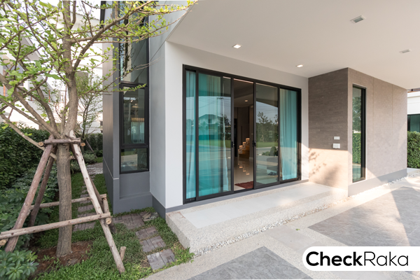 แบบบ้าน ศุภศิริเป็นบ้านสไตล์ Modern 3 ชั้น มีประตูกระจกและหน้าต่างรอบๆ บ้าน ให้ความรู้สึกทันสมัย